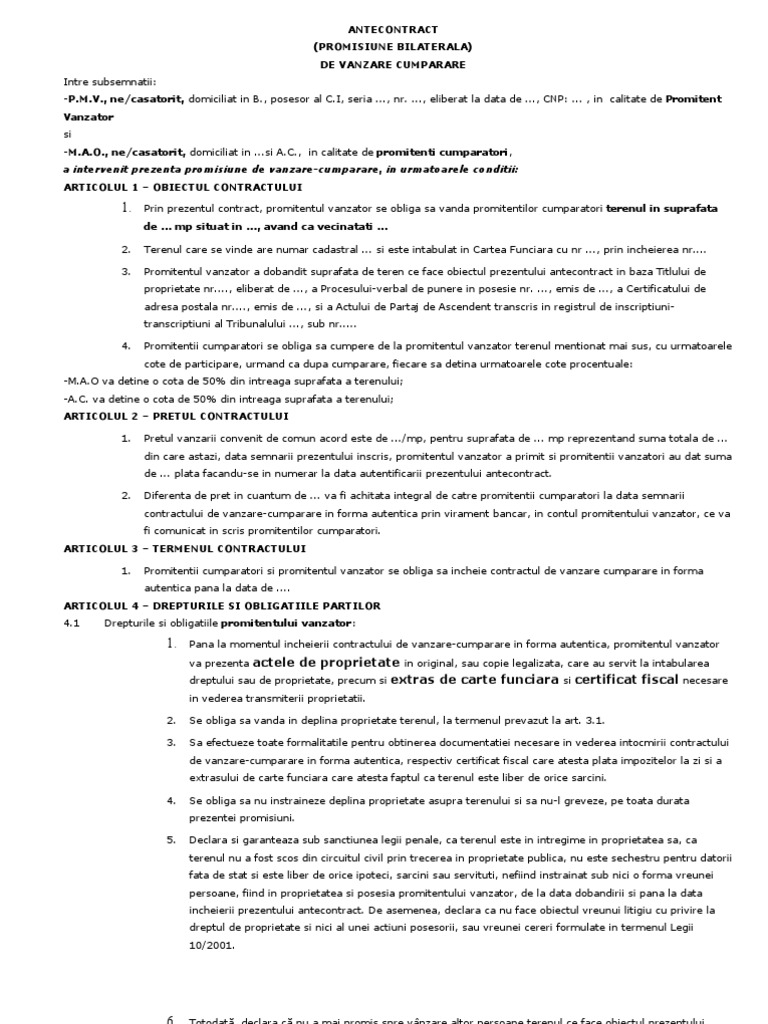 untuk "Antecontract Vanzare Cumparare Teren"