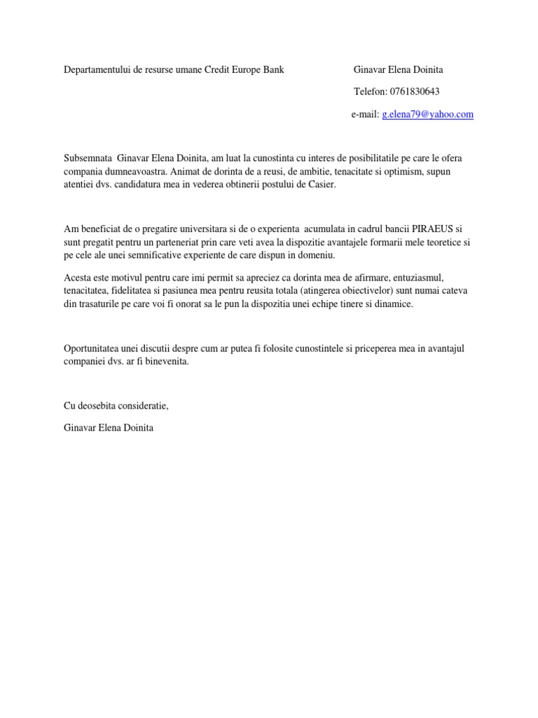 Informaţii de contact adresă numărul de telefon telefon mobil email angajator nume companie adresă data. Posted on 13 februarie 2011 | lasă un comentariu. Animată de dorinţa de a reuşi , am aplicat la acest job….