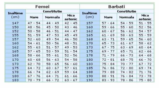 untuk "Greutatea Ideala In Functie De Varsta"